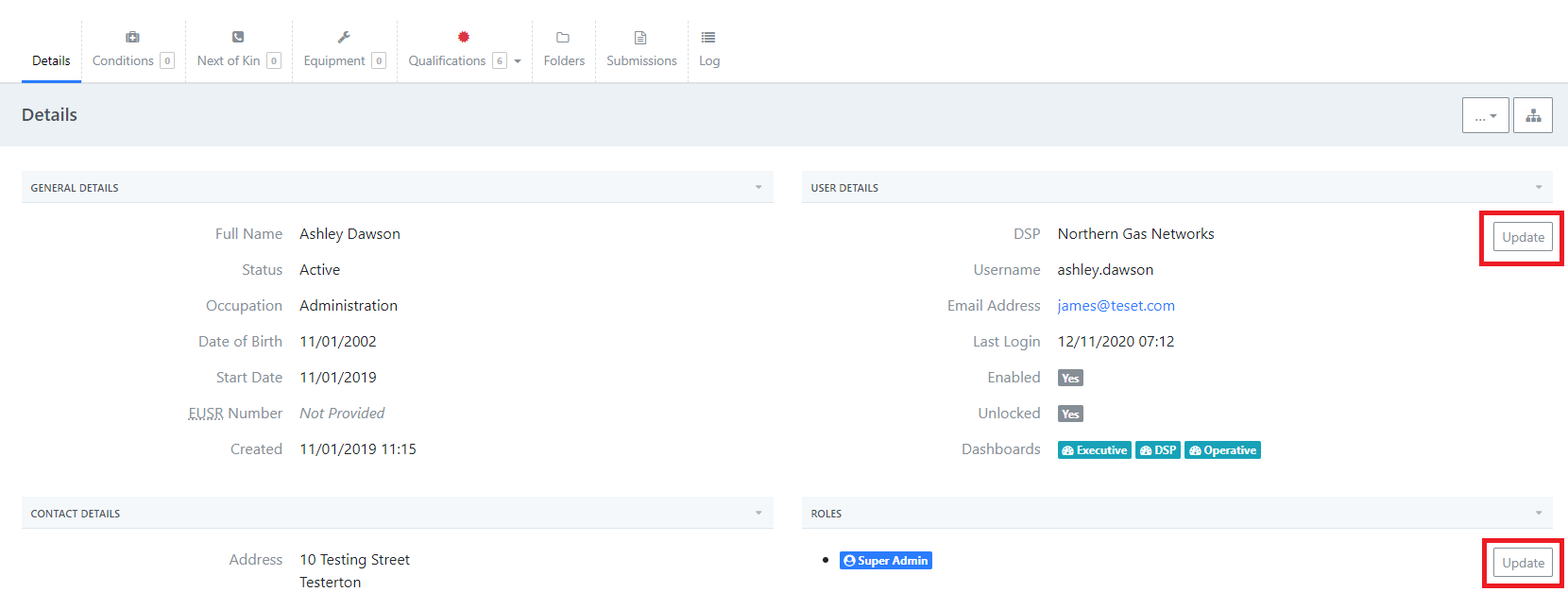 Tip - If you can't see this update option, and you need it for your job, speak to an administrator from your organisation about your "roles" and whether you have sufficient permissions.