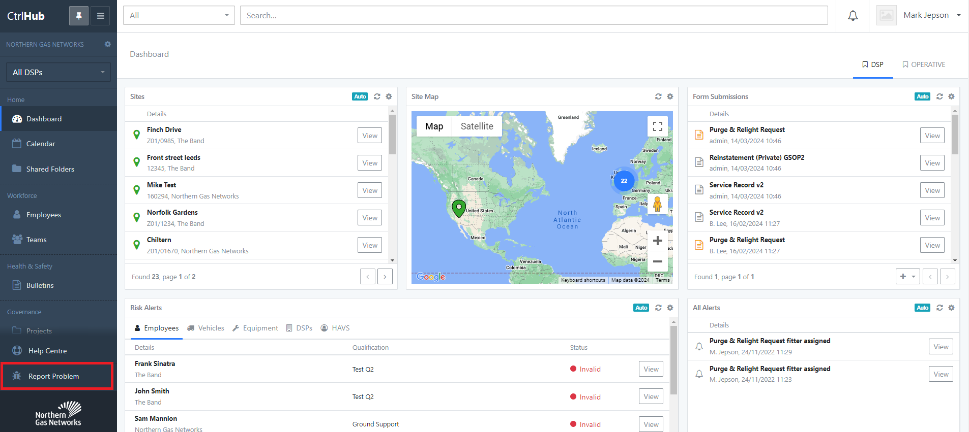 If a system user encounters an issue, they can report it with the 'Report Problem' facility.