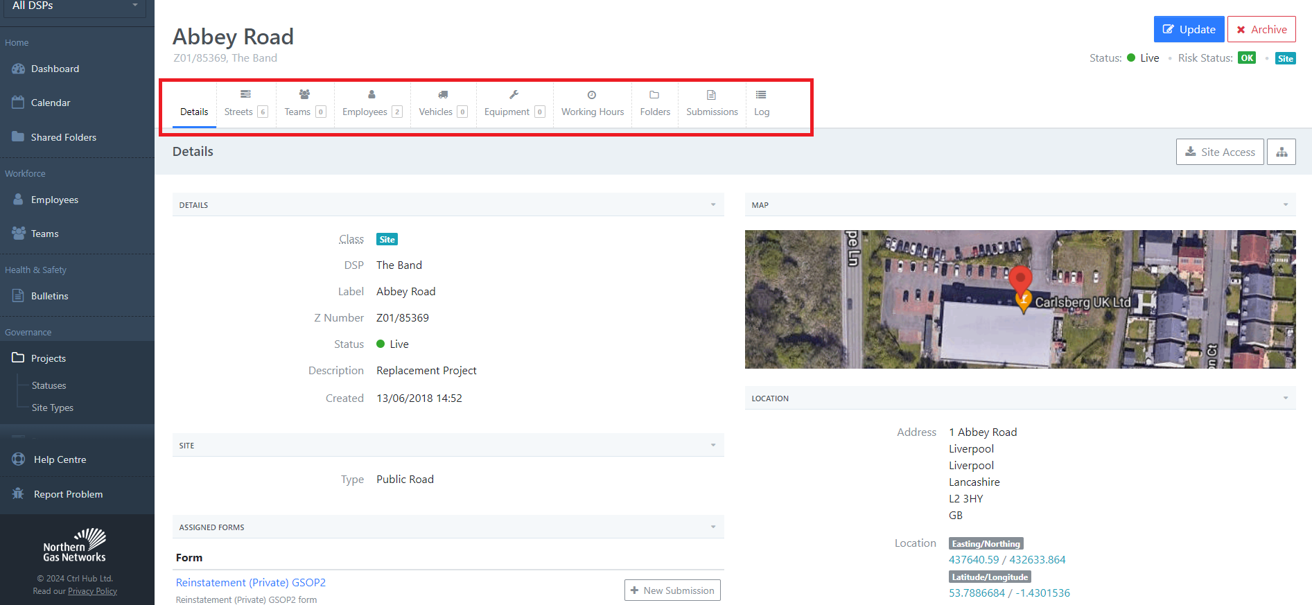 The Details tab contains basic information such as project name, project code, project duration plus dates etc.