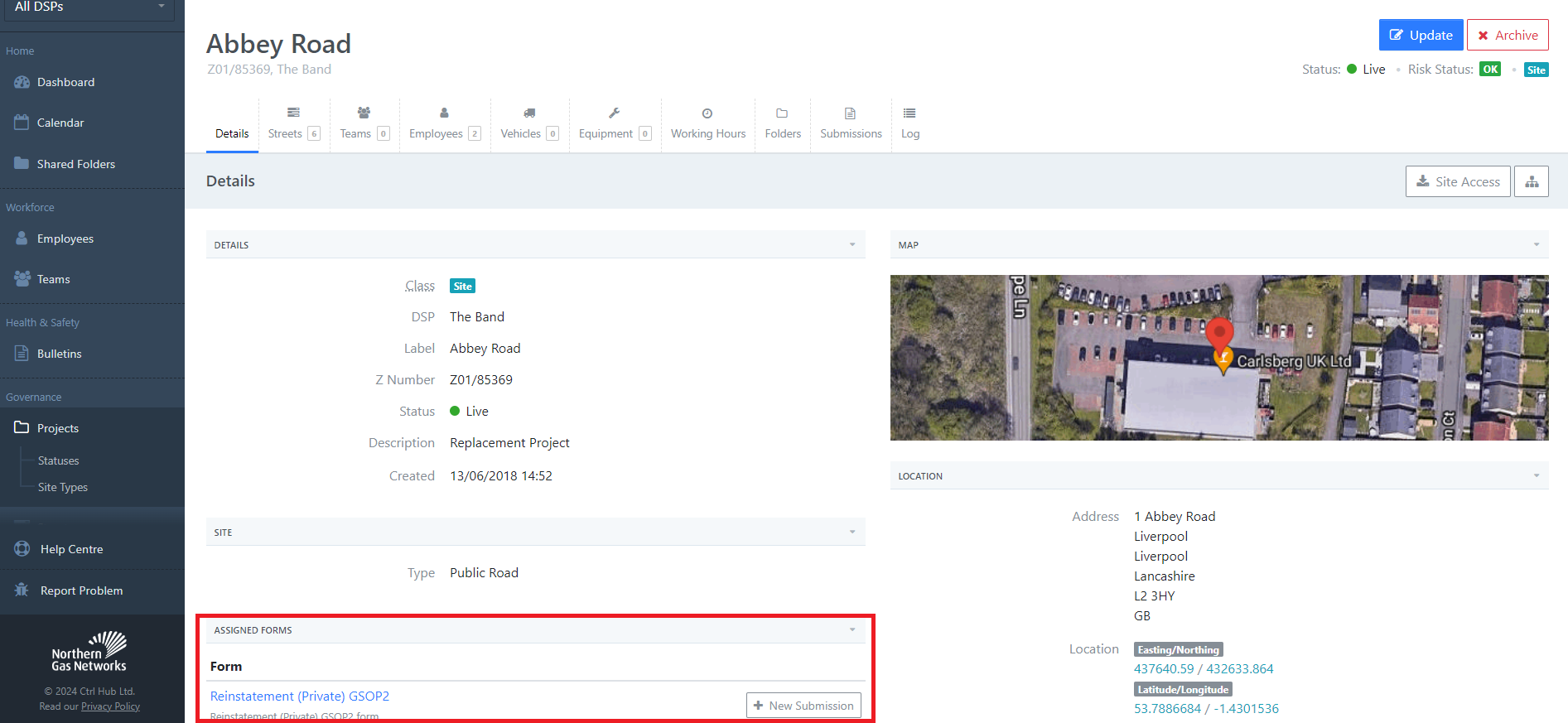 We can also view any forms that have been specifically assigned to a project for completion.
