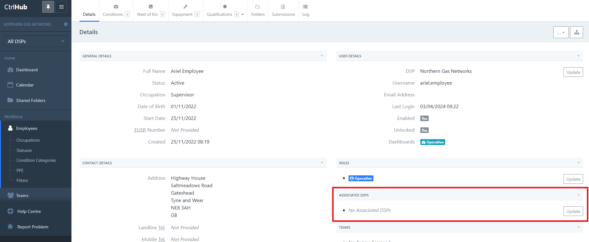 Only certain users will have the permission to assign Associated Organisations, if you do not see an ‘Update’ button, please speak to a super user within your organisation for assistance.