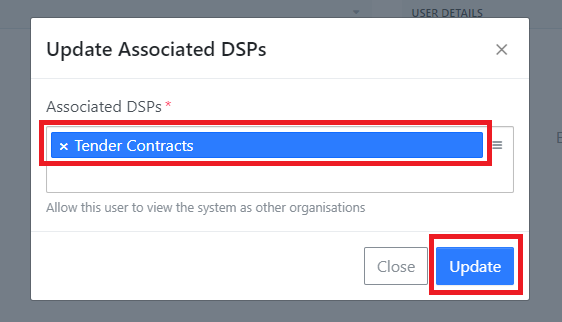 Some users will need to have Associated DSPs in addition to their primary DSP, linked to their User Profile in order to produce reports, view more data & operate as different DSPs