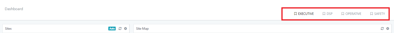 There are five dashboard types: Executive, DSP, Operative and Safety